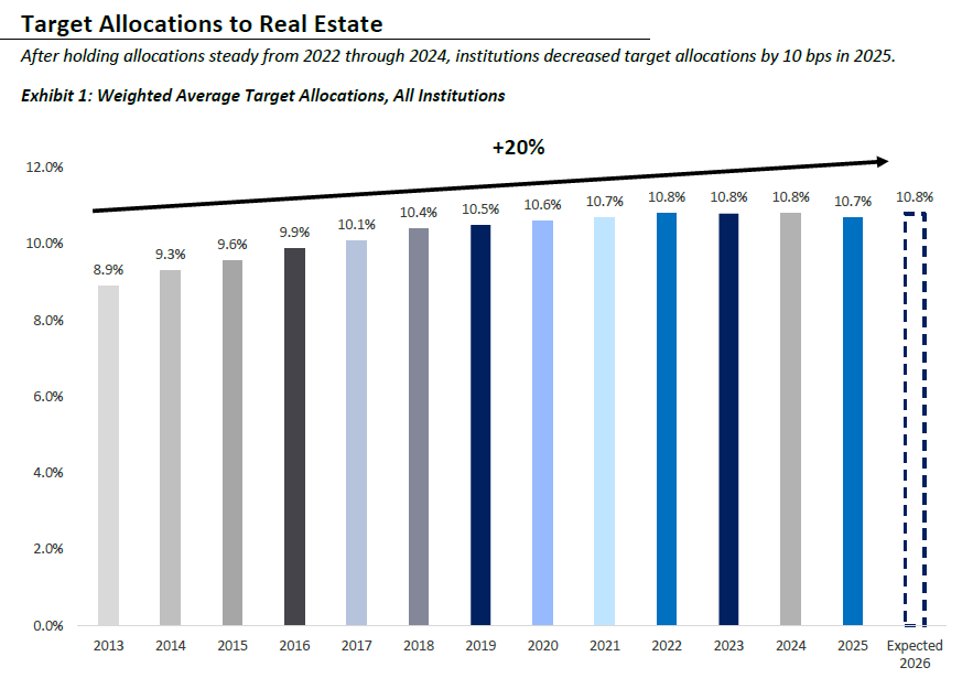 Good morning. Institutional investors are dialing back real estate allocations for the first time in over a decade, signaling a subtle shift in strategy. Rising competition from infrastructure and private credit is reshaping portfolio priorities.