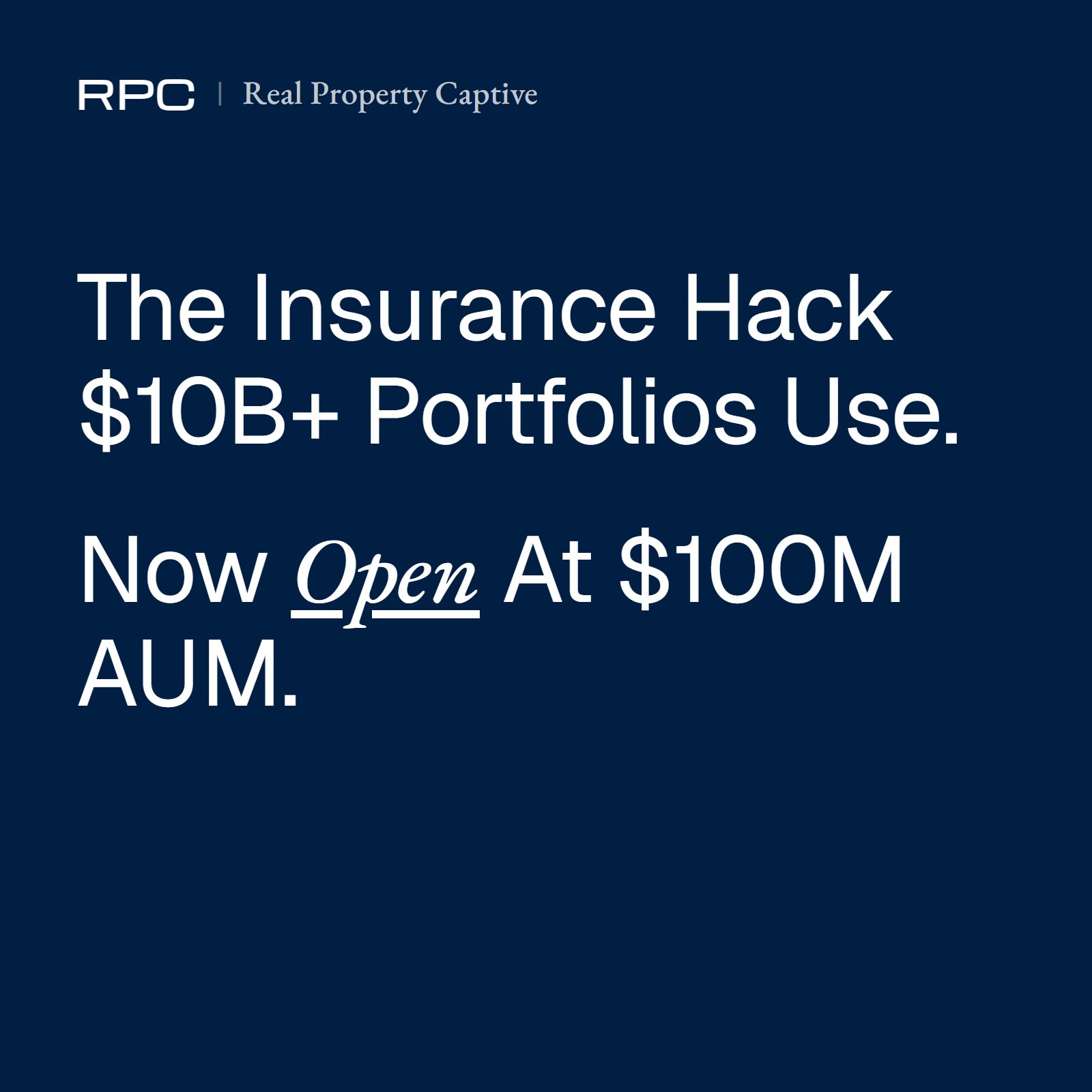 Real Property Captive opens the same lender-approved structure to portfolios between $100M and $2B—a first of its kind.